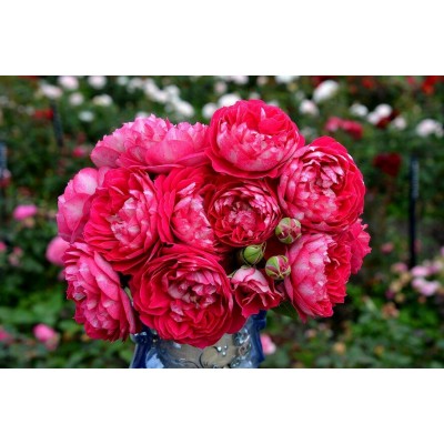 Бутоны собраны в соцветия по 3-4 цветка в каждом. При этом цветки распускаются постепенно, а не одновременно. Аромат розы слабодушистый, но очень интенсивный.